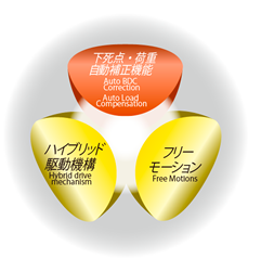采用在锻造压力机中有实绩的连杆机构,由于加工范围内滑块速度慢,因此成形性优秀,实现高精度加工。要是设定自由运动,由于仅在必要的位置更多降低速度,因此不用降低生产SPM即可兼顾成型性和生产性。