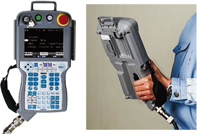 通过采用新型示教盒,追求“缩短程序修正时间”。 采用轻巧易操作的挂件。
