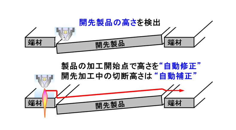 使用CCD相机拍摄图像,自动补正垂直切割后的工件偏差。