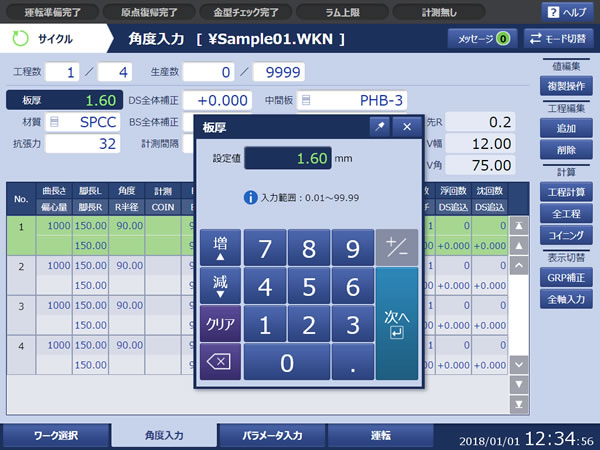 通过自动补正功能,消除材料波动和长宽方向的角度偏差,可以稳定地折弯加工到所需的角度。