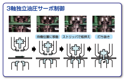 冲头、脱模器各自独立控制。因为用脱离器检测板厚以后再进入冲切工序,即使发生废料上跳,由于动作中止,可以防止模具损坏。